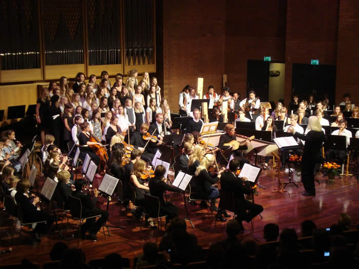 Fra festkonserten i Lindemansalen 15.11.09. Johan Nicolai dirigerer tuttiorkesteret. ©Foto: Rolf Nykmark 09